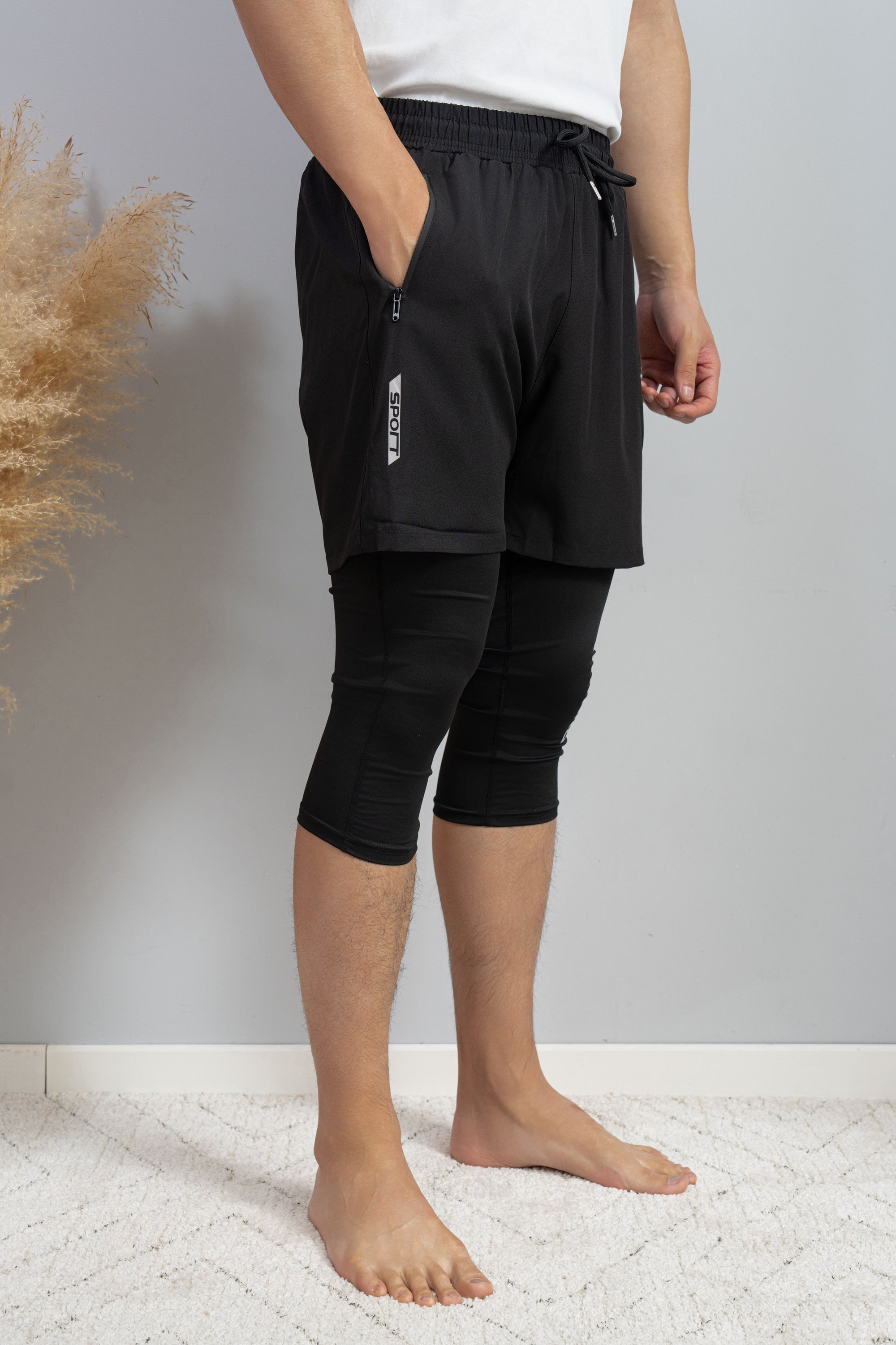 Découvrez notre short Cache Awra, spécialement conçu pour les hommes musulmans qui souhaitent pratiquer du sport tout en respectant la pudeur. Ce modèle innovant combine un short de sport classique offrant liberté de mouvement et un cache awra intégré, cousu directement, qui descend en dessous du genou pour une protection totale.